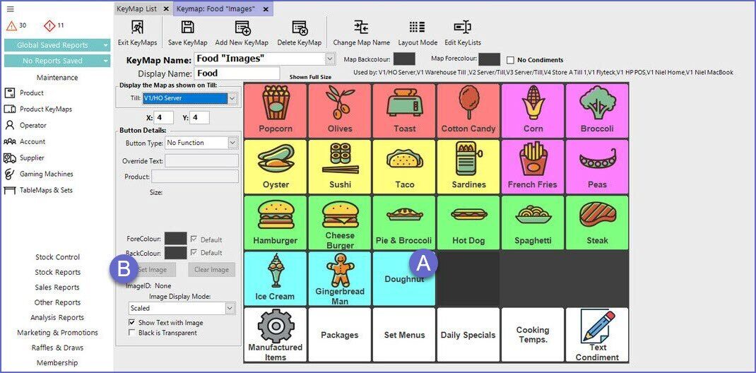 - To add an image to a button first select the Key (A) then press the Set Image button (B)
