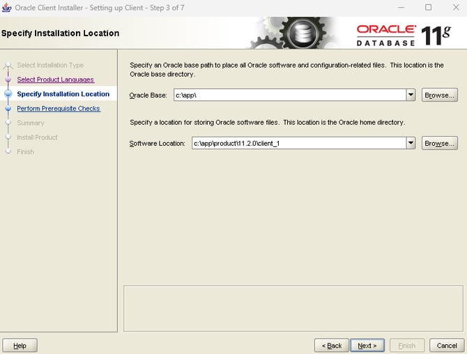 Find the Oracle Client Home [as highlighted below] and click Finish