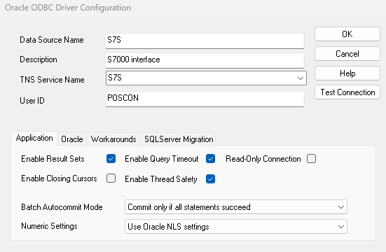 The DSN [data source name] should be S7S as ODBC config.