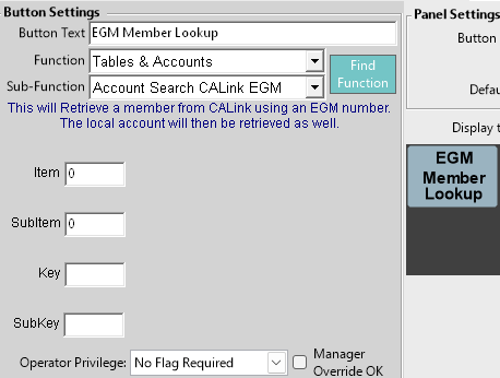 You will need to add the EGM lookup Function to the Account panel and other places it may be