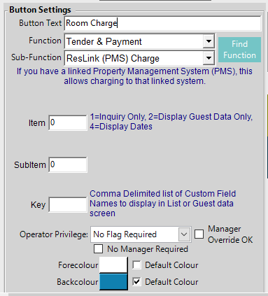 - Sort Groups = Will send a room charge broken up by Sort groups.