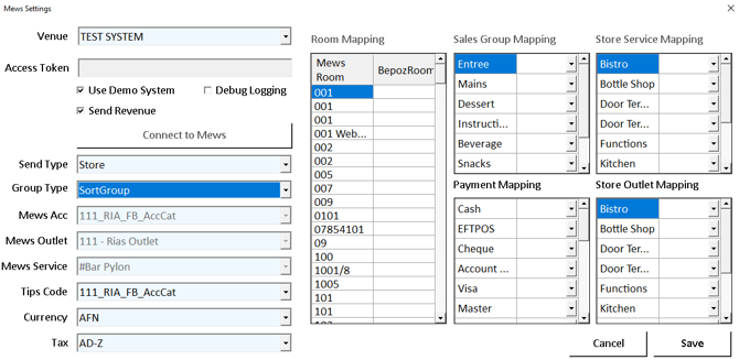 - Map the Store to Mews Services, choose a service for each Bepoz store.