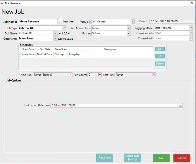- Set the Last Export Date e.g 02/Feb/2022 09:00