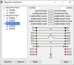· Edit the Virtual Port Pair 2 from CNCA2 and CNCB2 to COM34 and COM35