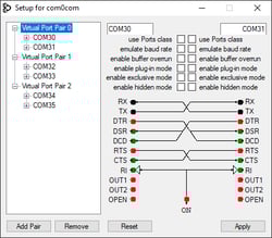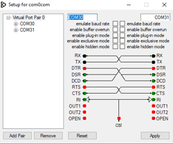 · Edit the Virtual Port Pair 0 from CNCA0 and CNCB0 to COM30 and COM31