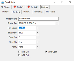· Kitchen Printer should have COM32 as the pair is COM32 <-> COM33