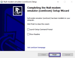 · Exit out of the Setup for com0com