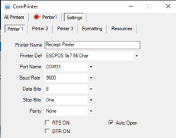 · Reciept Printer should be set to COM30 as the pair is COM30 <-> COM31