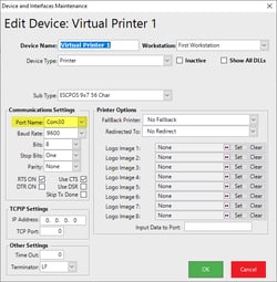 · Other Printer should have COM34 as the pair is COM34 <-> COM35