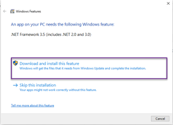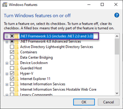 Check .NET Framework 3.5 and click OK