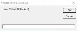 Restore Venue Database window will prompt to enter the Venue ID that you wish to recover