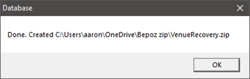 Database.exe will create a file called 'VenueRecovery.zip' in the zipped backup directory