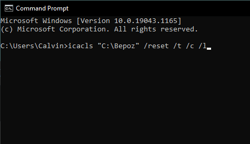 Run the following command "icacls "C:\\Bepoz" /reset /t /c /l" without quotes.