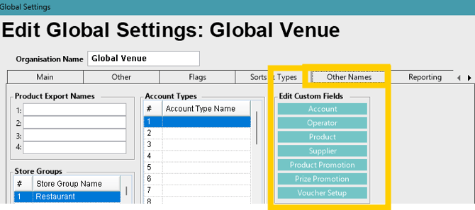 - Custom Fields can be found within Product Maintenance, Operator Maintenance, Account Maintenance, Supplier Maintenance, Product Promotions, Prize Promotions, and Vouchers