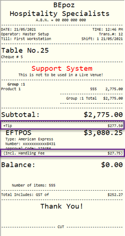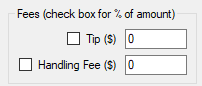 You can specify Handling Fees and Tip amounts as % or $ amount before clicking the Transaction Result