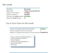 but if we keep scrolling down through the Report, what was highlight in this example was the following Xfer.dll was high memory usage in Xfer.Audit.