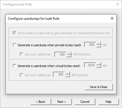This tool gives you the ability to monitor a process and create a dump file for ‘Crash’, Performance and ‘Memory and Handle Leaks’