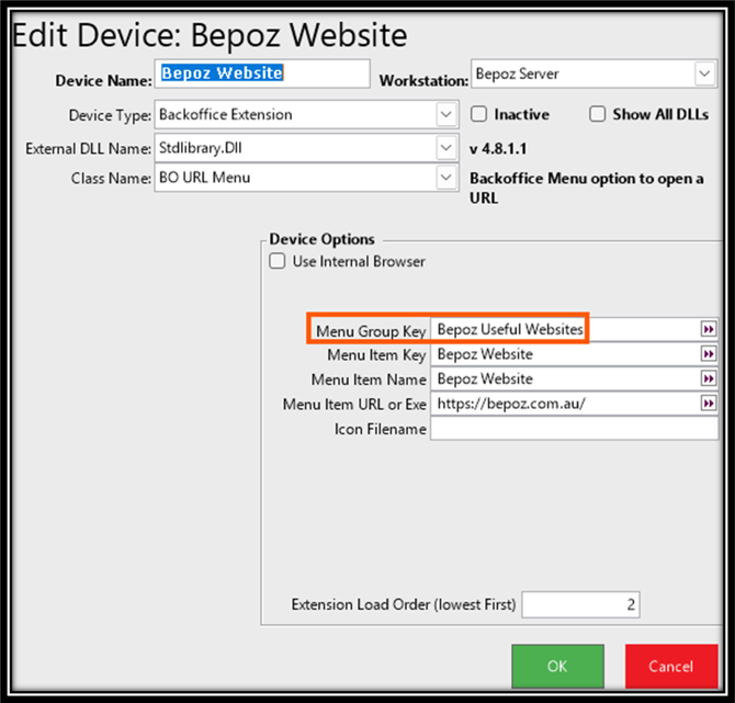 Don't Change the Highlighted Field, all Web links will then appear under the Bepoz Useful Websites menu