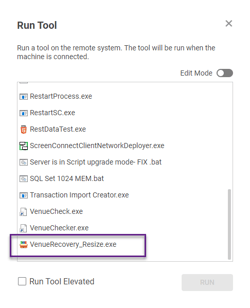 NOTE: If the VenueRecovery DB has 10 GB of Data this process can take some time to delete the Transactional Data