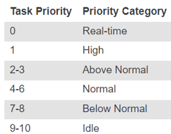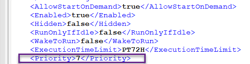 Change the default of 7 to 5 to start an application at Normal Priority.