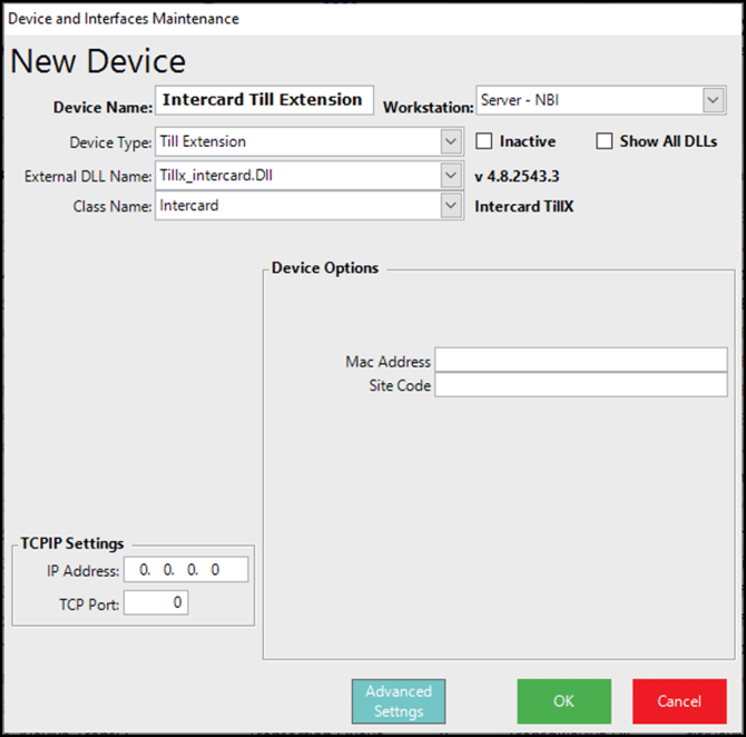 Each SmartPOS terminal must be configured with an Intercard Till Extension Devices in BackOffice.