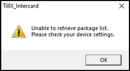 The ‘advanced settings’ form is a ‘live’ form, meaning it requests information from Intercard as it’s opened. If there is no live connection to the Intercard server, you will see the following dialogue informing you that the Intercard Product list will be shown.