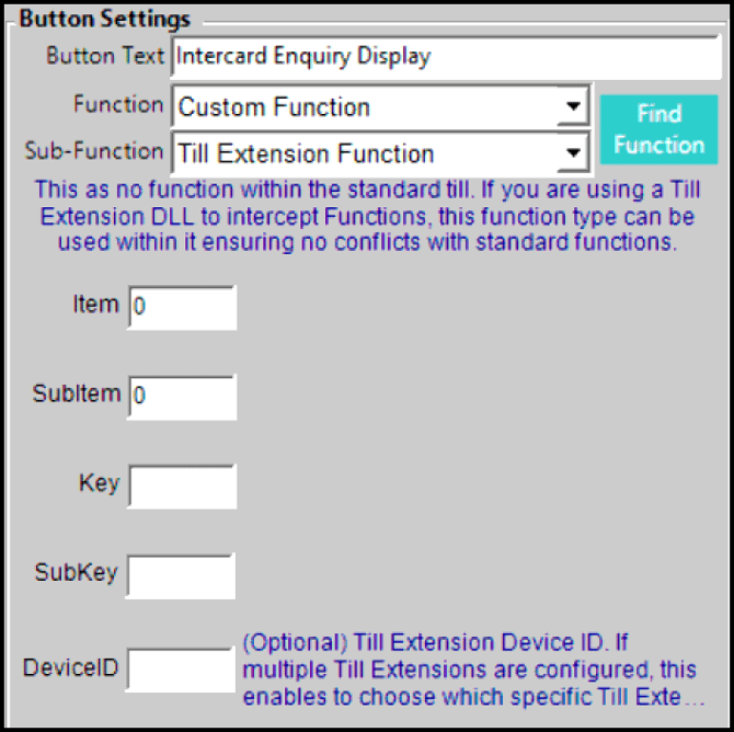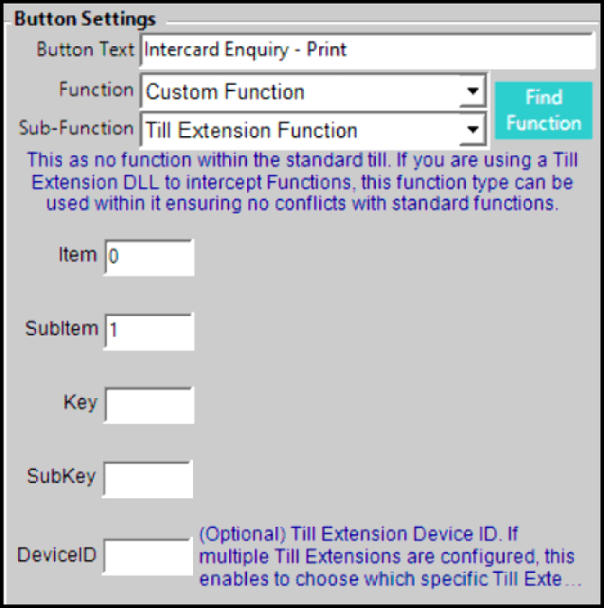 Set the Function to "Custom Function" and the Sub-Function to "Till Extension Function."
