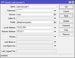 · Local Address is always the same for all Secrets its the (Host IP address of the Mikrotik) 10.0.0.254