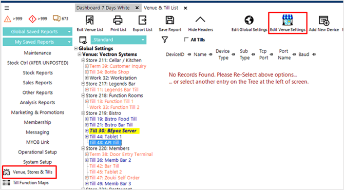 Go to Bepoz Back Office â System Setup â Venue, Stores & Tills