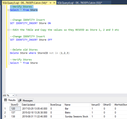 There are instances of Databases where a Venue might have been converted from a multivenue to a single site and the Store numbers are now not sequential or starting from StoreID 1, instead they have StoreID's like 127, 130, 138 etc