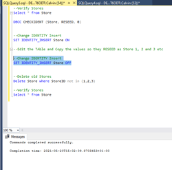 So below pointed out in green we have to: SET @OrgStoreID = 120 and SET @NewStoreID = 1