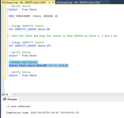 DBCC CHECKIDENT (Store, RESEED, 0)
