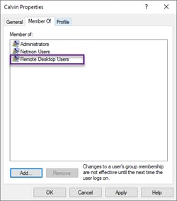 Then double click on the same user and go to the member of tab and click Add and Type in Remote Desktop Users.