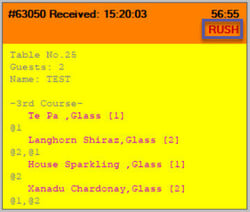 When an order is selected and clicked on 'Rush' button, a 'RUSH' text is displayed on the order receipt header which indicated that selected order is in priority for preparation