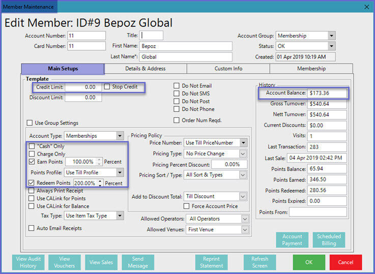 - There are certain Account settings that will affect how an Account can Tender a Transaction and how Points will be earned and redeemed
