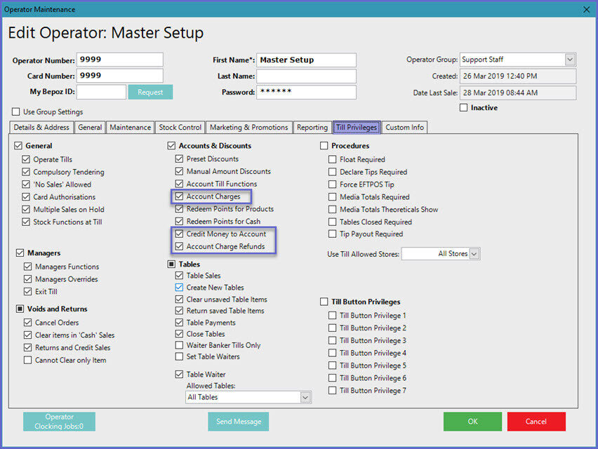 - The flags permitting these can be found in BackOffice within Operator Maintenance on the
