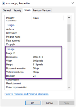 In the example above the aspect ratio can be seen by right-clicking the image file and selecting the Details Tab
