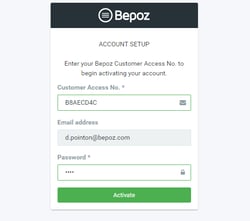 Type the Custom Access No in the box provided as written on the activation email. Click on Validate button and you will now be prompted to login. Use the email address and password set within Back Office and click on Activate button. This operator will now have access to Bepoz Online. Any additional operators that require access should be configured within Control Desk.