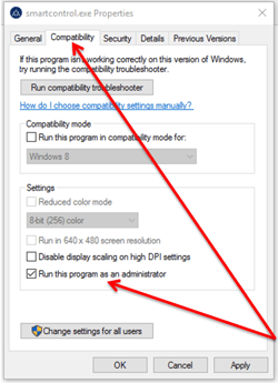 Make sure SmartController is running in Admin mode. This is required for the Web API to run. This can be checked and done in the Compatibility Tab within Properties of the application.