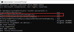 Look for the following PhysicalBytesPerSectorForAtomicity