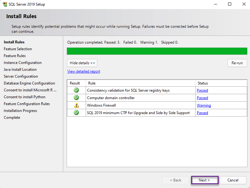 Install Rules will highlight any rule failures or software requirements. Click Next to continue.