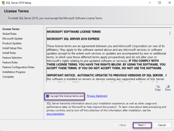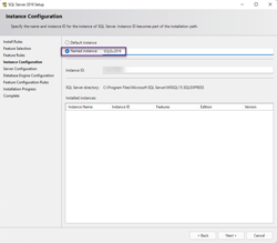 Instance Configuration can go with the default name 'SQLExpress' but would recommend renaming this to something more suitable. i.e SQLEX2019 Click Next to continue.
