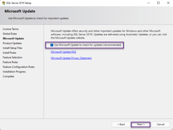 Optional you can use Microsoft Update to check for any SQL Updates. (Default is unchecked), click next to continue.