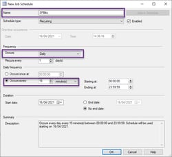 This should now have created the agent that will run the stored procedures at 15 minute intervals and store the results in the DBATools Database.
