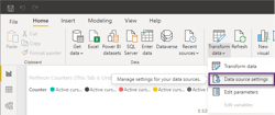 Since the template is only populated with Demo Data you need to point it to your ‘DBATools’ Database. To do this you have to click on Transform Data -> Data Source