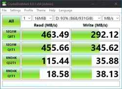 You can get a quick snapshot of disk performance, primarily Sequential and random disk read and write, in this case the higher the number the better