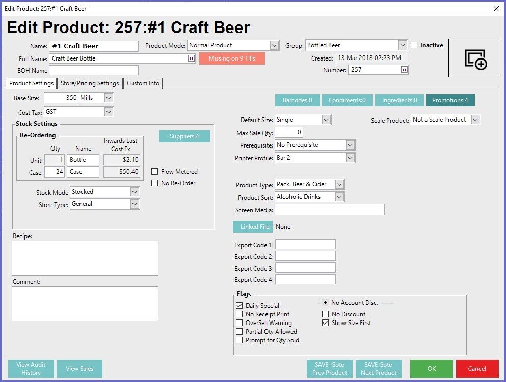 This article discusses the contrast between the Stock Modes of Stocked and Non-Stocked as they pertain to Products in Bepoz. In Bepoz, there are 6 Stock Modes that can be selected when a Product is being created. The Stock Mode selected may determine whether other settings are applicable for the Product and whether or not certain data is recorded.