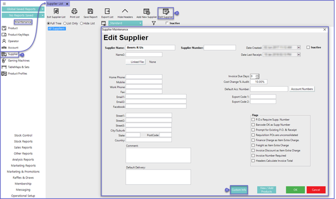 - In the Custom Info Menu, follow the steps below to Edit Supplier Custom Info