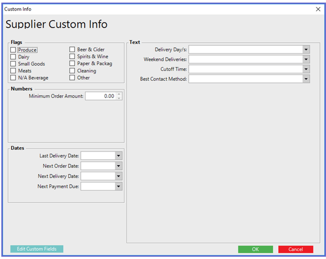 This article covers Supplier Custom Fields how they can be Edited, Viewed, and used in BackOffice.
