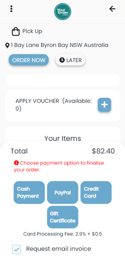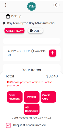 This feature allows users to change between two colours for the frontend, light colour scheme (Red) and dark colour scheme (Blue). To access the colour scheme toggle, click “setting” on the left-side menu of YourOrder backpanel. Once the page has finished loading, Press the “Branding” tab and scroll down the expanded panel till Light Colour Scheme label is located.
